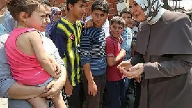 Hayrünnisa Gül, çıkışta sokaktaki çocuklarla bir süre sohbet etti.