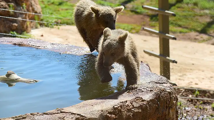 Ziyaretçilerin ilgi odağı olan yavrular, hayvanat bahçesi görevlilerince besleniyor. Birbirleriyle oynayan ve renkli görüntüler sergileyen yavru ayılar, çocukların ilgisini çekiyor.