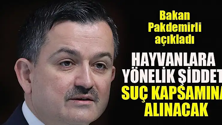 Tarım ve Orman Bakanı Bekir Pakdemirli, "Hayvanlara yönelik şiddetin suç kapsamına alınmasını, sahipli hayvanlarını sokağa terk edenlere yaptırım getirilmesini hedefliyoruz." ifadelerini kullandı.