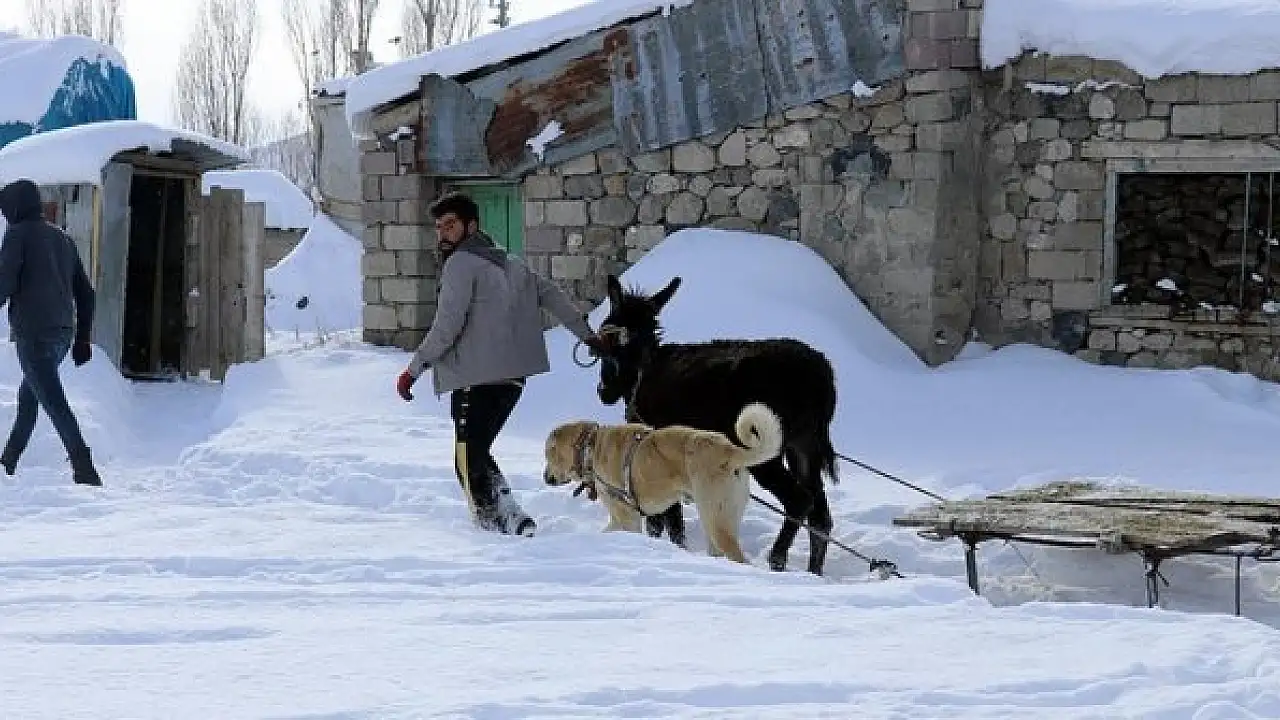 Hayvanlarının yem ve su ihtiyacını karşılamaya çalışan besiciler, kendi içme sularını da bölgedeki kaynaklardan temin ediyor. Vatandaşlar, yarım metreyi bulan karda atlarına yükledikleri bidonlarla evlerine su taşıyor.
