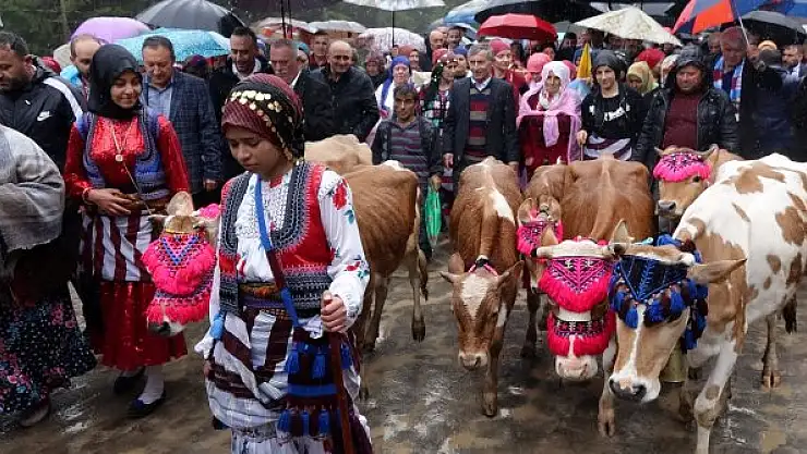 Trabzon'un Akçaabat ilçesinde yöresel kıyafetler giyen Akpınar köyü sakinleri, sırtlarında çocukları olan beşikler ve süsledikleri büyükbaş hayvanlarıyla kemençe eşliğinde Büyük Oba Yaylası'na göç etti. Yağmur altında uzun bir yolculukla yaylaya ulaşanlar, düzenlenen 'Yayla Göçü Şenliği' ile horonlu kutlama yaptı.