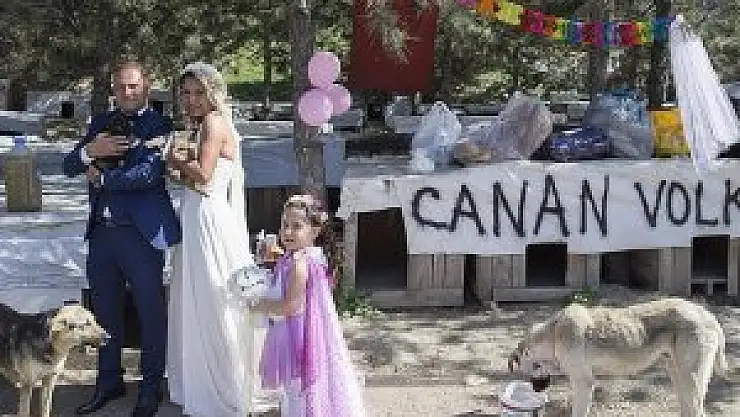 Ankara'da sokak hayvanları için yapılan etkinlikte tanışan çift, kurucusu oldukları hayvan barınağında dünyaevine girdi. Düğüne katılanlar, hediye olarak barınaktaki hayvanlar için köpek maması getirdi.