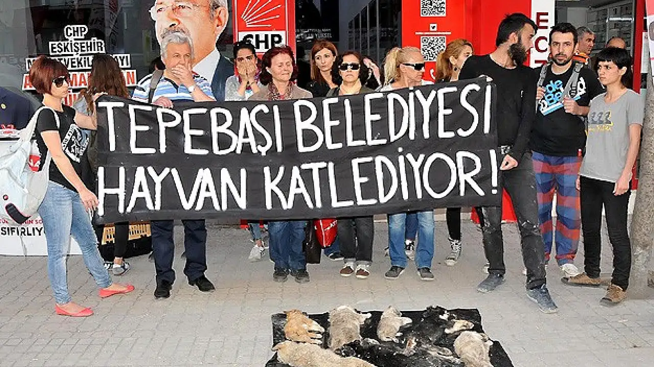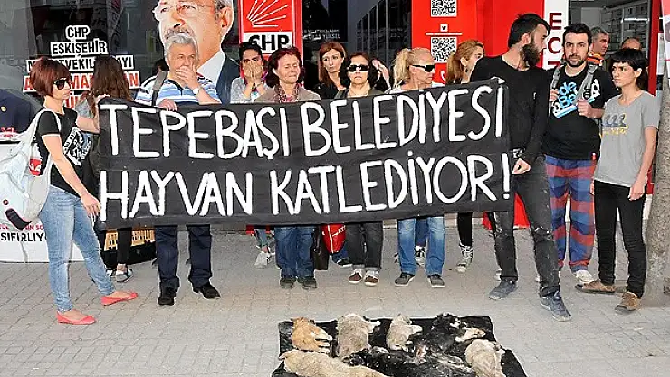 Eskişehir'de, Tepebaşı Belediyesi ekiplerinin hayvanları telef ettiğini ileri süren bir grup hayvansever, belediye başkanı Ahmet Ataç'ın partisi CHP'nin seçim bürosu önüne getirdikleri köpek leşleriyle protestoda bulundu.