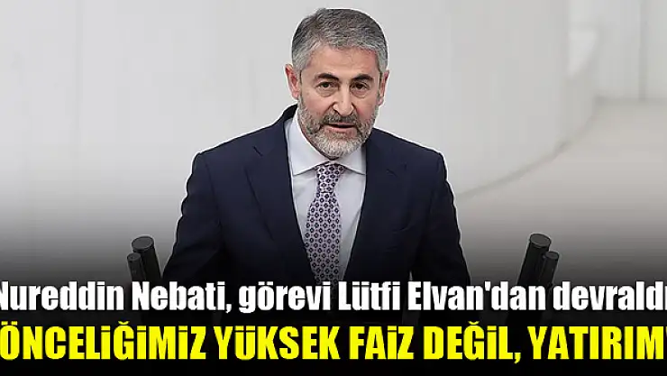 Lütfi Elvan'dan boşalan Hazine ve Maliye Bakanlığına atanan Nureddin Nebati, görevini Elvan'dan devraldı. Devir teslim töreninde açıklamalarda bulunan Bakan Nebati, 'Önceliğimiz yüksek faiz değil, yatırım olacak' dedi.