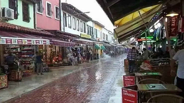 Bir çok cadde ve sokağı göle çeviren sağanak yağmura sokakta ve kafeteryalarda yakalanan tatilciler ise otellerine geri dönmek zorunda kalırken, ortaya da ilginç görüntüler çıktı.