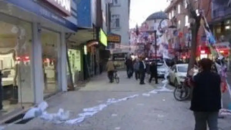 İl Başkanlığındaki partinin bayrakları kaldırıldı. Toplanan kalabalığın bina önündeki bekleyişi sürüyor.