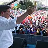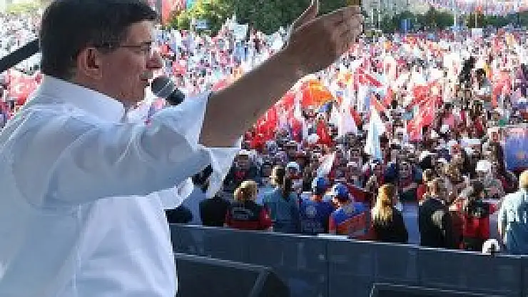 Şimdi HDP 7 Haziran'da barajı aşamazsa şiddet yeniden başlar diyorlar. Siz buna izin verir misiniz? Sizler bu şehirleri korur musunuz? Bizler bu tehditler karşısında hiçbir şekilde taviz vermeyeceğiz. Çözüm sürecinden bir adım dahi geri atmayacağız. Çözüm sürecinin sahibi AK Parti'dir. Özgürlüklerin koruyucusu tek parti AK Parti'dir. Orta Doğu'da kardeşliği tahkim edecek parti bizim partimizdir.
