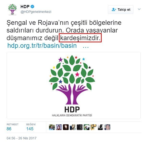 Yapılan açıklamada; yerleşim yeri olmadığı bilinen bölgelerde Ezidi ve Türkmenler'in yaşadığını iddia ederek terör örgütlerinin vurulmasından duydukları rahatsızlığı açıkça "kardeşimizdir" şeklinde savundu.
