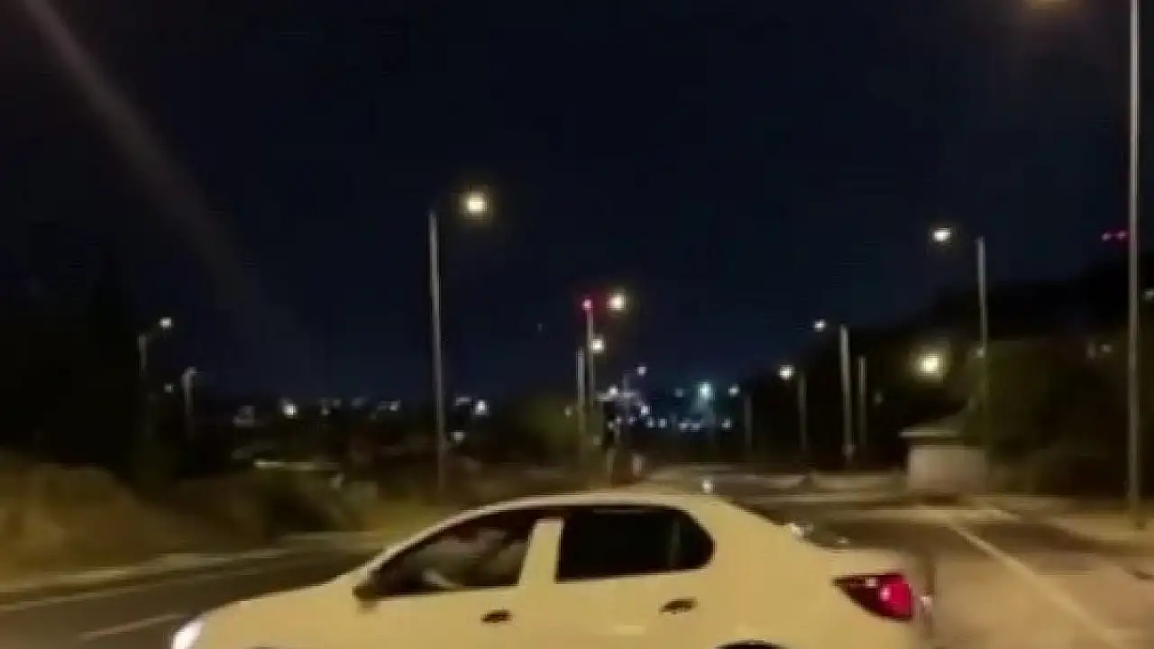 Gece saatlerinde bir sürücü otomobili ile drift yaptı. O anları ise arkadaşı cep telefonu kamerası ile kayda aldı.