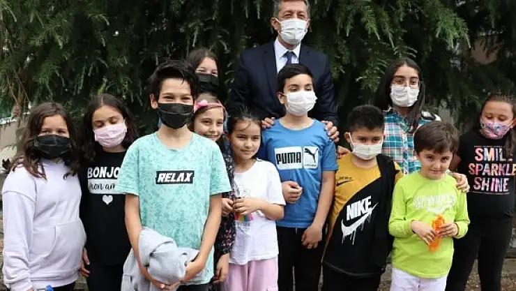 Daha sonra Safranbolu ilçesindeki Kanuni Ortaokulu'nda düzenlenen "Eğitim Yatırımları Toplu Açılış Töreni"ne katılan Selçuk, konuşması için kürsüye davet edildiği sırada camdan bakan çocukların yanına giderek selamladı.