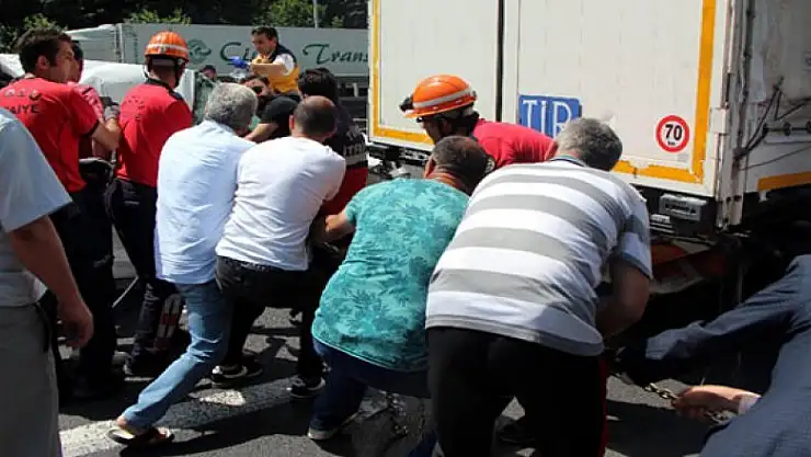 Bolu'da, TIR'a arkadan çarpan otomobilde sıkışarak yaralanan 3 kişiyi çıkarmak için itfaiye, 112 Acil, UMKE, Karayolları ve yoldan geçenler seferber oldu.