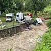 Toprak kaymasıyla birlikte otoparktaki bazı araçlar dereye devrilerek, su içinde kaldı.