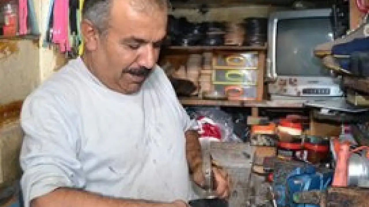Ordu'da 6 aylıkken yüksek ateş nedeniyle kaldırıldığı hastanede kalçasından yapılan iğne sonucu felç olan ve hayatı boyunca ayakkabı giyemeyen Hamza Engin, kundura ustalığı yapıyor.