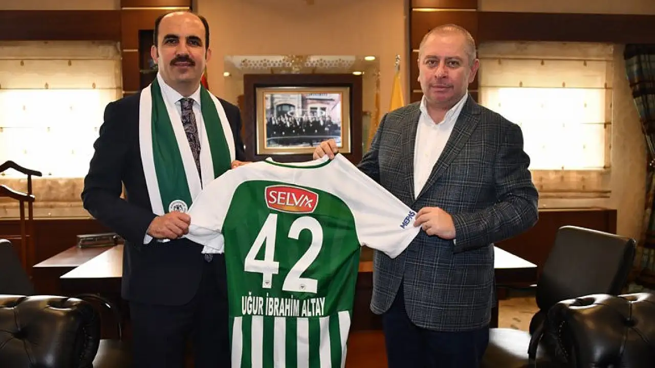 Konyaspor Kulüp Başkanı Hilmi Kulluk ve İkinci Başkan Selçuk Aksoy Olağanüstü Genel Kurul öncesinde Büyükşehir Belediye Başkanı Uğur İbrahim Altay'ı makamında ziyaret etti.