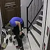 Küçükçekmece'de bir şahıs, girdiği binadan seçtiği ayakkabıları kapı önünde poşetlere doldurup kaçtı. O anlar güvenlik kamerasına yansıdı.