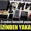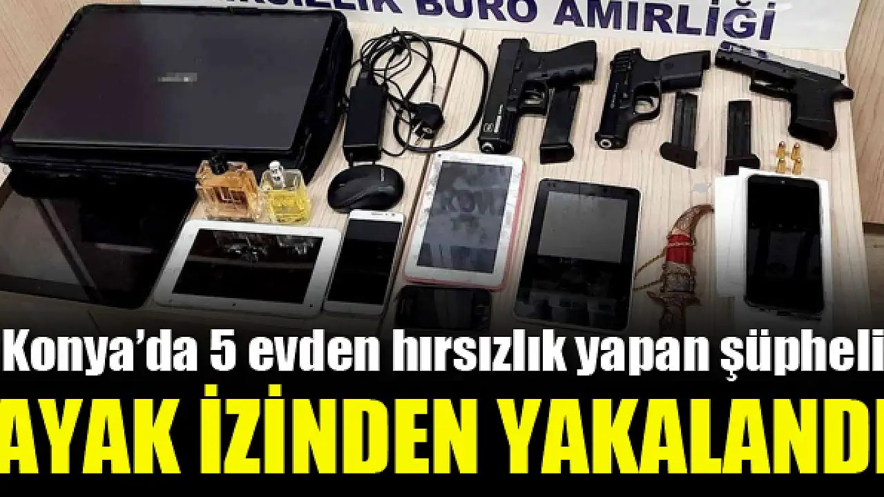 Edinilen bilgiye göre, merkez Selçuklu ilçesi Selahaddin Eyyübi Mahallesi ve Yazır Mahallesinde 5 evden hırsızlık olayına karışan şüpheli, girdiği evlerden ziynet eşyası, bilgisayar, tablet, parfüm ve bir çocuğun kumbarasında bulunan bin 300 lirayı çaldı. Hırsızlık ihbarları üzerine Asayiş Şube Müdürlüğüne bağlı Hırsızlık Büro Amirliği ekipleri, şahsı yakalamak için çalışma başlattı. Yapılan çalışma neticesinde adreslerde detaylı araştırma yapan polis, şüpheliye ait olduğu tahmin edilen bir evden halının üzerinden ayak izi buldu. Olay Yeri İnceleme Şube Müdürlüğü ekipleri tarafından delil olarak değerlendirilen ayak izi, daha önceden alınan örneklerle karşılaştırması sonucu şüphelinin O.Y. olduğu belirlendi. Şüpheli O.Y. aynı bölgede yakalanarak gözaltına alındı. Şahsın ikametinde yapılan aramada ise bir çok laptop, akıllı telefon, elektronik alet ele geçirildi. Ayrıca evde bulunan 3 adet ruhsatsız tabancadan dolayı şahsa 6136 sayılı (ateşli silahlar ve bıçaklar ile diğer aletler hakkında) kanunundan işlem yapıldı. Emniyetteki işlemlerinin ardından adliyeye sevk edilen O.Y. çıkartıldığı mahkemece hırsızlık suçundan tutuklanarak cezaevine gönderildi. Hırsızlık şüphelisinin evinde ele geçirilen malzemeler ise sahiplerine teslim edildi.
