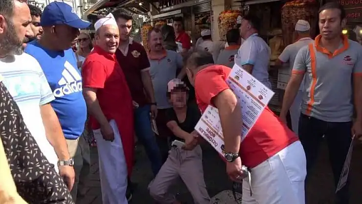 Taksim İstiklal Caddesi'nde yabancı uyruklu kadınların 300 dolarını ve değerli eşyalarının bulunduğu paketi çalan iki çocuktan biri yakalandı. Yakalanan çocuk hem kendini çeken muhabire hem de polislere vurarak ortalığı birbirine kattı.