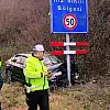 Hız yapan otomobil, hız uyarı tabelasına çarparak durabildi