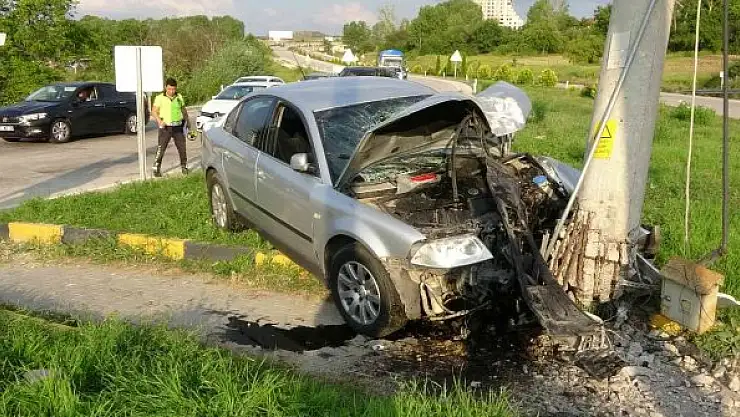 Kastamonu'da Doğu Çevre Yolundan seyir halinde olan otomobil, Hacıbey kavşağında hızını alamayınca refüjdeki betonarme elektrik direğine çarptı.