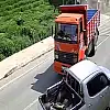 Hızla giden kamyonun altında kalmaktan son anda kurtuldular