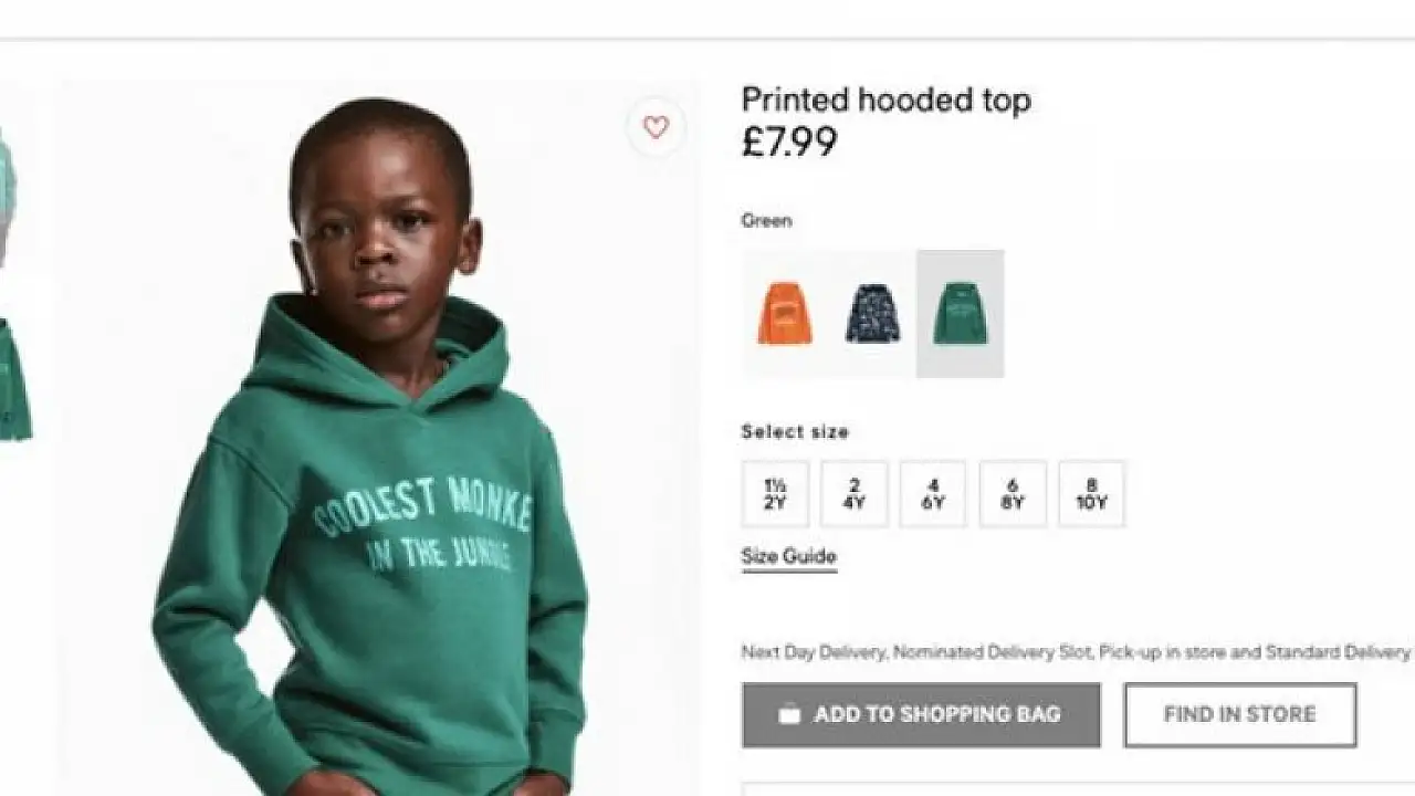 İsveç'li perakende markası H&M'in online alışveriş sitesinde yer alan bir ürün tanıtımı görseli için kullandığı siyahi çocuk ve giydiği sweatshirt'ün üzerinde yazan cümle H&M'in sosyal medyada ırkçılıkla suçlanmasına yol açtı.