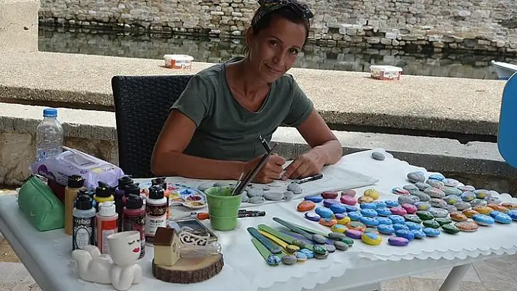 "Daha önce muhasebeciydim. Bir süre mesleğime ara vermiştim. Sonrasında bir kanalda bu sanatı gördüm. Hobi olarak başladım ama artık bu benim mesleğim oldu. Çok mutluyum. Resimlerin taşların boyutuna göre çizim aşaması ve kuruma süresi değişiyor. Derelerden topladığım taşlarda akrilik boya ve taş boyama kalemleri kullanıyorum. Annem ve babam Gelibolu'da yaşıyor. Her yıl yanlarına geliyorum. Tarih kokan bu güzel yerde resim yapılacak çok güzel yerler var. Güzel resimler ortaya çıkıyor. Buraya geldiğime değeceğini umuyorum." dedi.