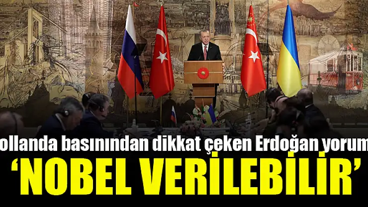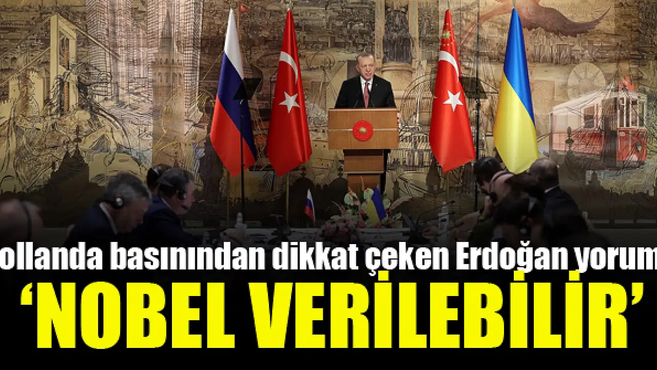 Cumhurbaşkanı Recep Tayyip Erdoğan'ın Rusya ve Ukrayna arasında yürüttüğü arabuluculuk faaliyetleri dünya basınında büyük yankı buldu. Hollanda’nın en yüksek tirajlı gazetelerinden biri, Erdoğan'a barış girişimlerinden dolayı “Nobel Barış Ödülü” verilebileceğini yazdı. Türkiye'nin Rusya ve Ukrayna arasında 5 haftadır süren savaşı sonlandırma mücadelesi ilk günden beri devam ediyor. Sık sık iki ülkenin liderleri ile görüşen Cumhurbaşkanı Erdoğan ise barışın tesisi için arabulucu olabileceklerini her fırsatta dile getirdi.