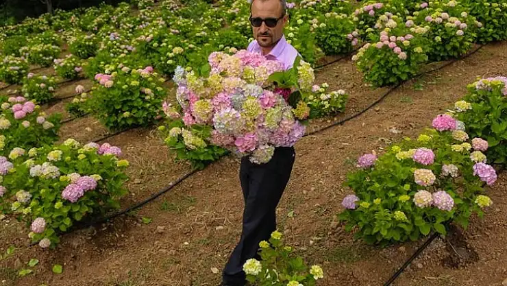 Hollanda'dan ithal ettiği ortancaları, yüksek maliyetinden bunalınca kurduğu 50 dönümlük bahçede yetiştirmeye başlayan çiçekçi Musa Gündoğdu, özellikle düğün süslemelerinde kullanılan bu çiçeğin ihracatına başladı.