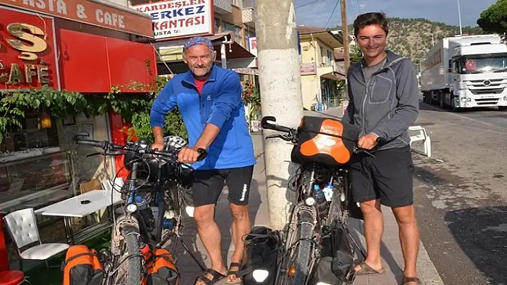 Hollanda’nın başkenti Amsterdam’dan yaklaşık 1,5 ay önce bisikletleriyle yola çıkan Ronald Dekker (54) ve oğlu Maurıce Dekker (23) Kastamonu’nun Hanönü ilçesine geldi.
