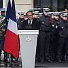 Fransa Cumhurbaşkanı François Hollande, geleneksel olarak kamu düzenini sağlayan kuruluşlarına yaptığı yeni yıl yıl ziyaretleri kapsamında Paris Emniyet Müdürlüğü’nü de ziyaret etti. Hollande, yağmura rağmen gerçekleştirilen tören sırasında saldırılarda hayatını kaybedenlerin isimlerinin yer aldığı anıta çelenk koydu.