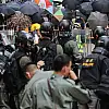 Hong Kong'da on binlerce protestocu, pazar günü de şemsiye ve gaz maskeleriyle sokaklara döküldü.