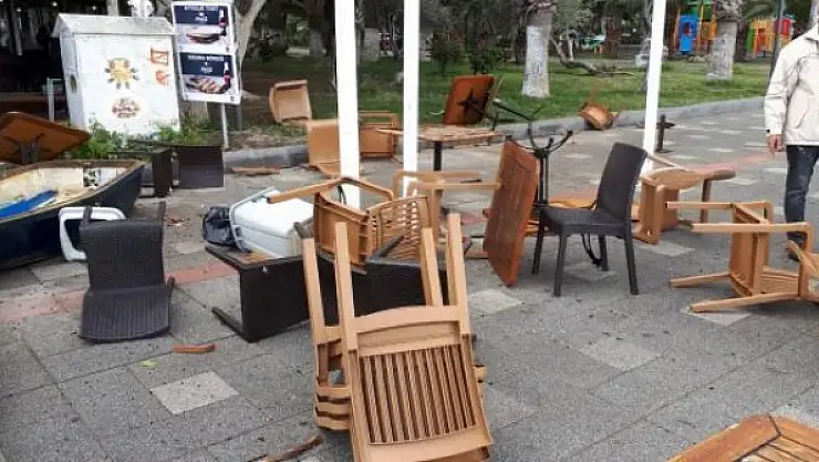 O esnada kafede oturan Enis Karabük, “Marinada oturuyorduk. Aniden bir rüzgar geldi. Deprem zannettik. Marinanın üzerinden büyük bir gürültüyle girdi. Çay bahçesinin önündeki masaları denize fırlattı. Denizdeki kayığı 10 metre havaya kaldırdı. Bir anda yere bıraktı. Sandalyeler ve masa kırıldı” dedi.