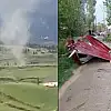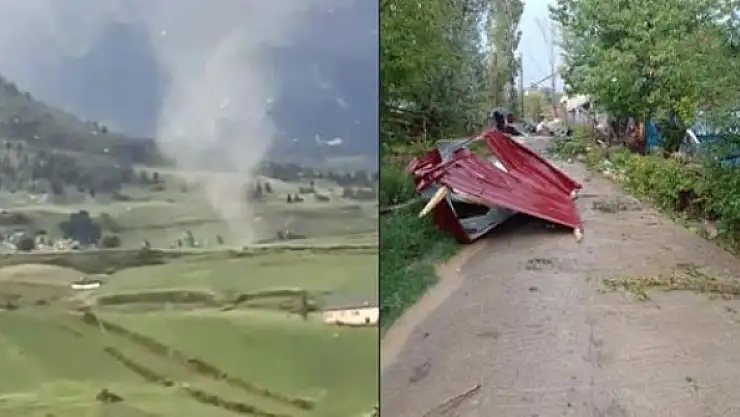 Artvin'in Şavşat ilçesinde oluşan hortum nedeniyle ev, ahır ve samanlıkların çatıları uçtu. O anları, köylüler cep telefonu kamerasına kaydetti.