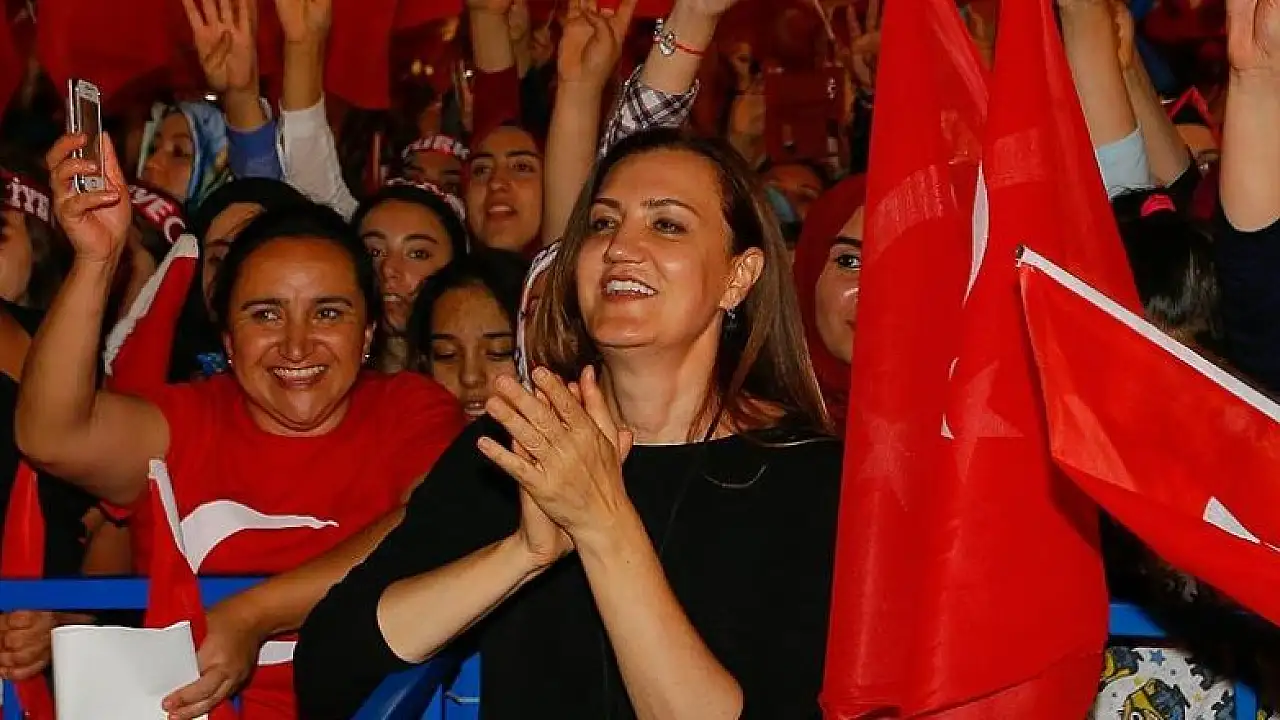 Slayt gösterisinde 15 Temmuz darbe girişiminde şehit düşenlerin fotoğraflarına da yer veren Nükhet Hotar, milletin demokrasiye sahip çıktığını, darbe girişimine karşı tankların altına yattığını fotoğraflarla anlattı.