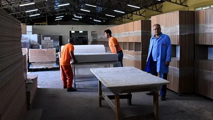 Ankara-Kayseri kara yolundaki kurumun mobilya iş kolunda ter döken hükümlüler, mahkeme salonlarının mobilyaları, hakim ve savcı büro takımları, dolaplar başta olmak üzere farklı tasarımlarla üretim yaparak, adliye ve cezaevlerinin tefrişine katkı sunuyor. Sigorta primleri ödenen hükümlüler, bir miktar ücret de alıyor.