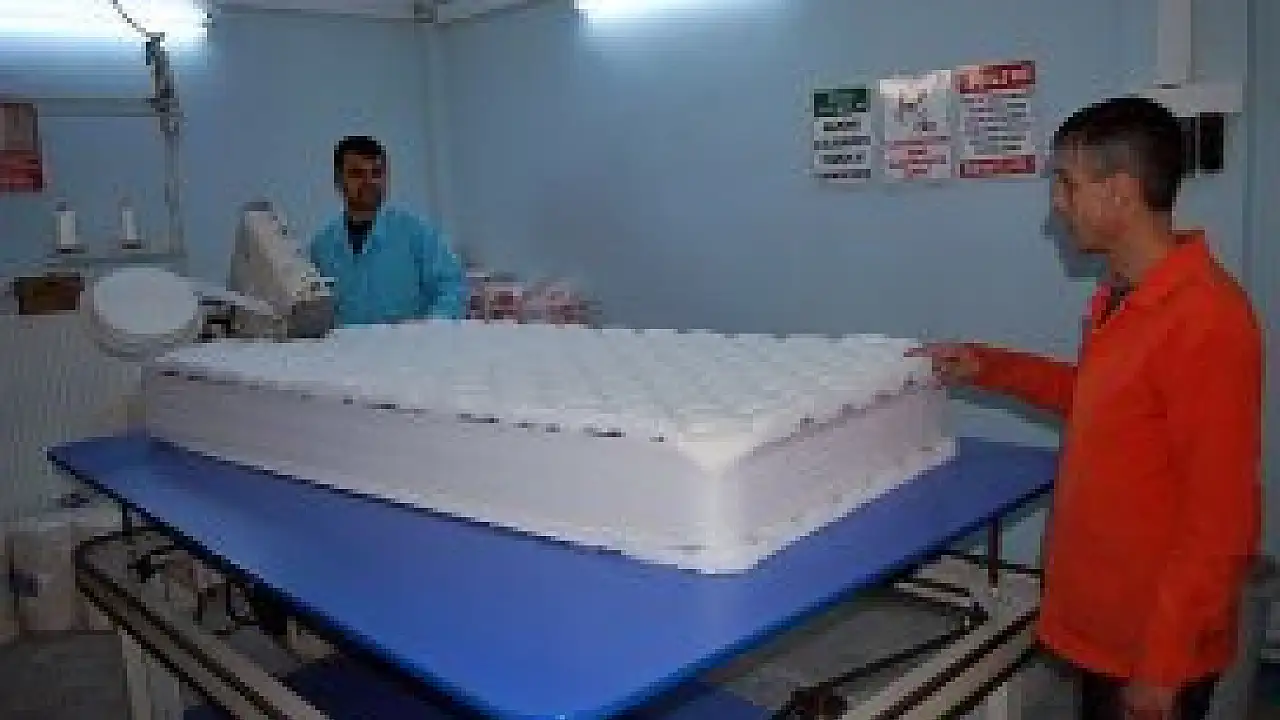 Bozüyük Açık Cezaevi'ndeki atölyede çalışan hükümlüler, yanmaya karşı dayanıklı olan ve geç tutuşan yatak üretmeyi başardı.