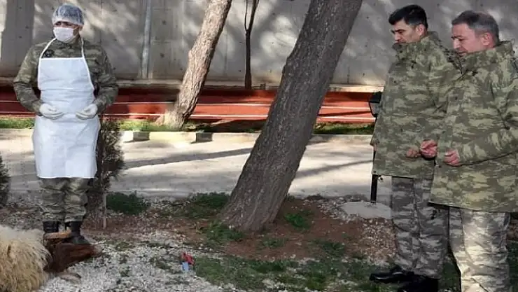 Genelkurmay Başkanı Hulusi Akar'ın, kuvvet komutanlarıyla birlikte gittiği Kilis'teki Fırat Kalkanı Harekat Merkezi'nde, El Bab'ın terör örgütü DEAŞ'tan kurtarıldığı saatlerde kurban kesildi.