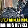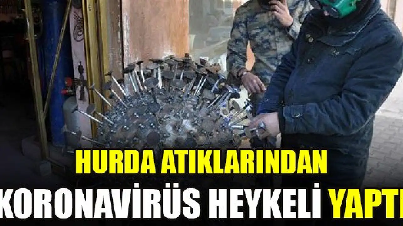 Hurda atıklarından koronavirüs heykeli yaptı