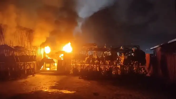 Hurda deposu yangında küle döndü