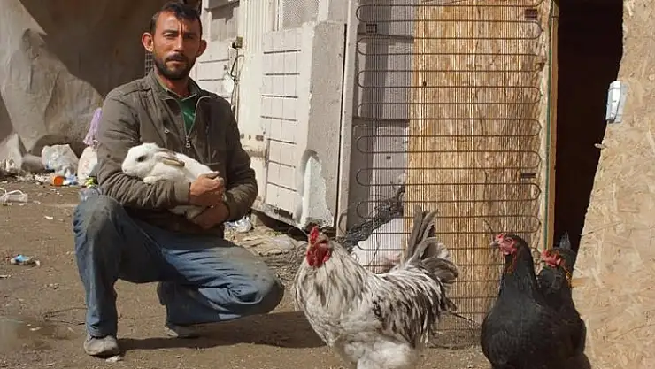 İş yerinin büyük bölümünü hayvanlara tahsis eden Murat Fidan, tavşan, sülün, keçi, koyun, tavuk ve köpek gibi çeşitli türde 150 hayvana, işinden arta kalan zamanlarda özenle bakıyor.