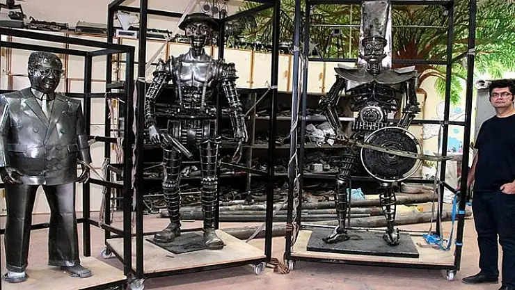 AA muhabirine açıklama yapan Keçeci, fakültenin atölyesinde yaklaşık 10 yıl önce hobi olarak hurdadan heykel yapmaya başladığını söyledi.