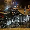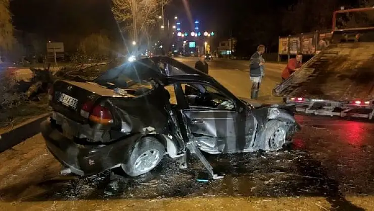 Eskişehir-Ankara kara yolunda meydana gelen trafik kazasında orta refüjdeki ağaçlara çarpan bir otomobil hurdaya dönerken, içinde bulunan 2 kişi kazayı yaralı olarak atlattı.