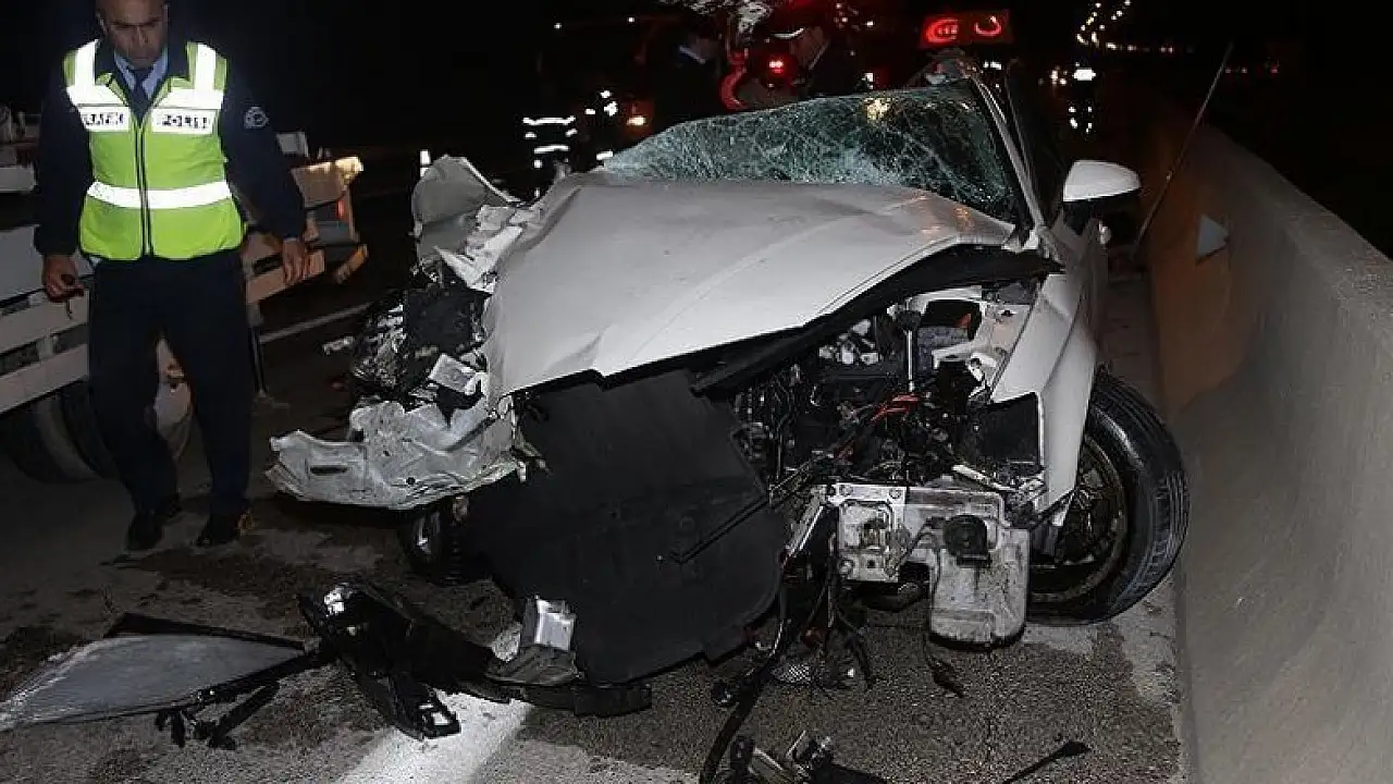 Çarpmanın etkisiyle adeta hurdaya dönen otomobilin motoru, aküsü ve diğer bazı parçaları otoyola saçıldı. Aracın tavanı da tırın dorsesine takıldı.