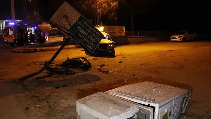 Adana'da telefon panosu, reklam panosu ve park halindeki araca çarpan otomobil hurdaya döndü.