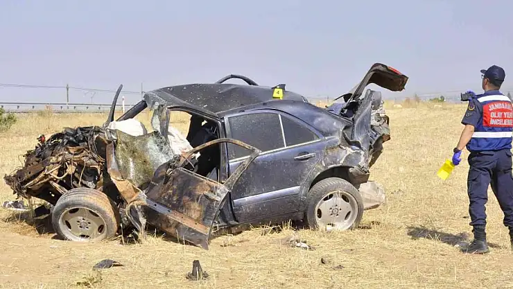 Karaman'da yoldan çıkan otomobil tarlaya takla attı. Otomobilin hurda yığınına döndüğü kazada 4 kişi yaralandı.