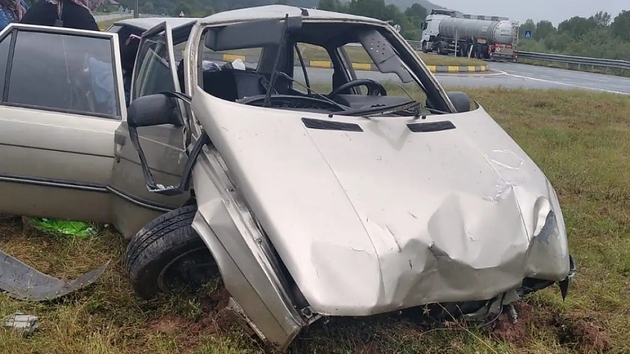 Hurdaya dönen otomobildeki 5 kişi yaralandı