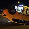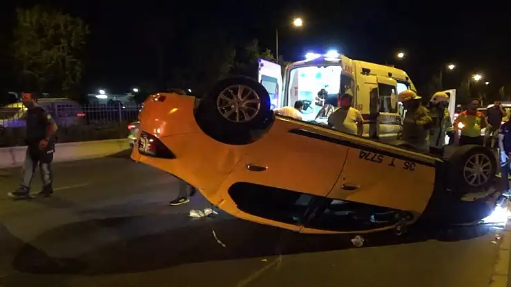 İZMİR'in Bayraklı ilçesinde, sürücüsünün kontrolünden çıkan taksi beton bariyerlere çarparak takla attı.