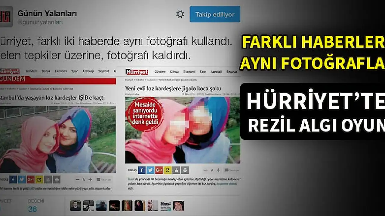 İki ayrı haberde aynı bayanların fotoğrafını kullanan Hürriyet gelen tepkiler üzerine fotoğrafları kaldırdı.
