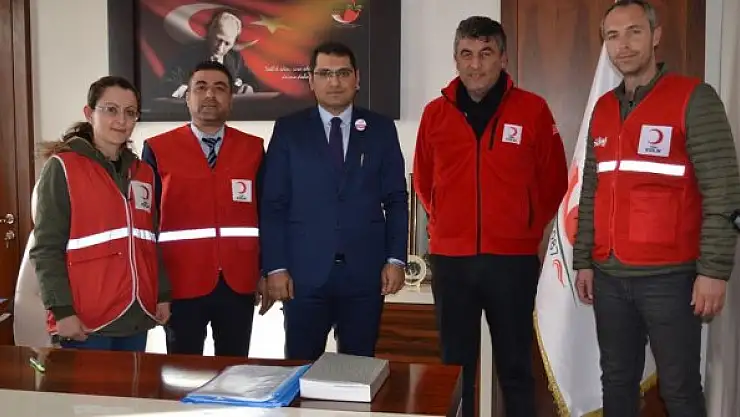 Ziyarette, Ateş, Kızılay'ın ilçedeki faaliyetleri hakkında bilgilendirmede bulundu.
