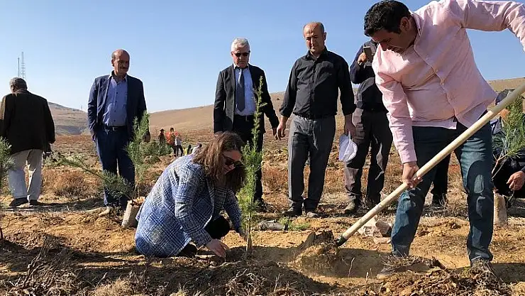 Hüyük Kaymakamı Dilara Şenoğlu ile Hüyük Belediye Başkanı Mehmet Çiğdem de kampanyaya katılarak açılan çukurlarda çam fidanlarını toprakla buluşturdu, ardından fidanlara can suyu verdi.